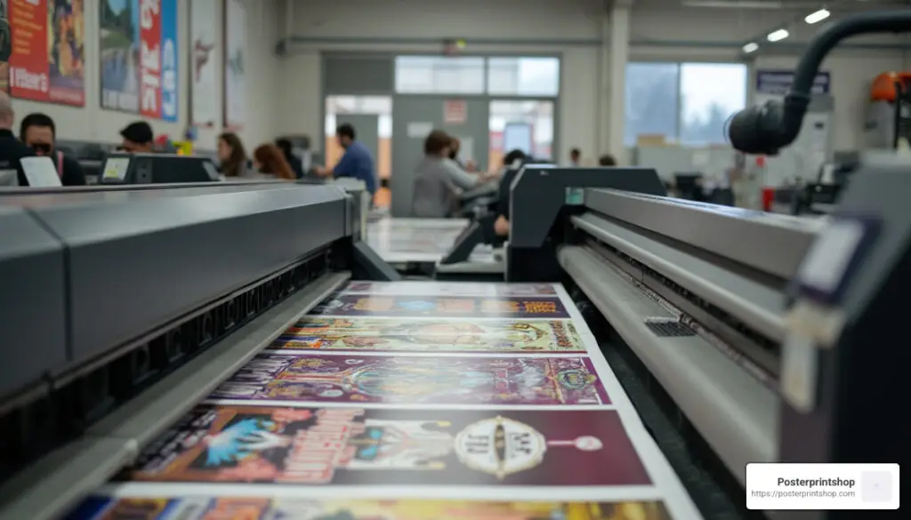 Our print shop offers high-quality poster printing in a variety of sizes and finishes to meet your needs. We specialize in both UV ink and InkJet printing, ensuring vibrant colors, sharp detail, and long-lasting results. Whether you need posters for events, marketing, or personal projects, we can produce custom sizes to suit any requirement.